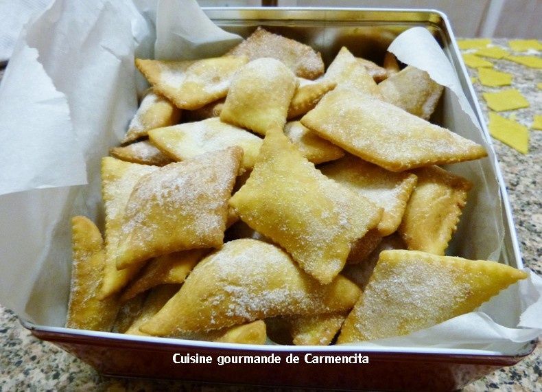 Chauffer le bain de friture. Quand il est chaud, y plonger les bugnes par cinq ou six, les retourner quand elles sont dorées pour cuire l'autre face. Les égoutter sur du papier absorbant et saupoudrer de sucre glace ou fin.