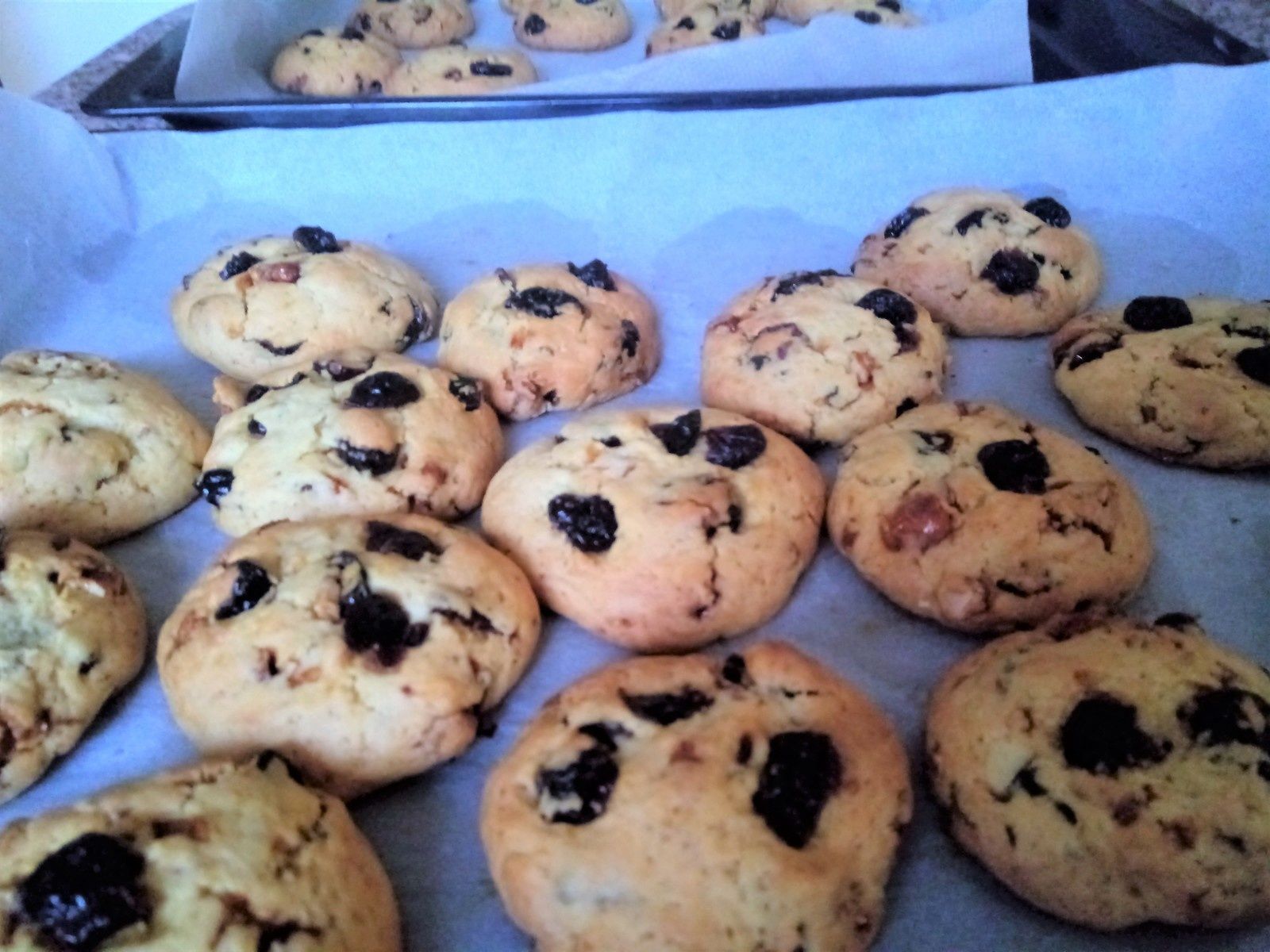 Comme il me restait des noix de cajou caramélisées, et ayant des cranberries dans mon placard, je n'ai pas pu résister à l'envie de refaire des cookies avec cette association. Et bien je vous vous dire qu'Ils ont été très appréciés,